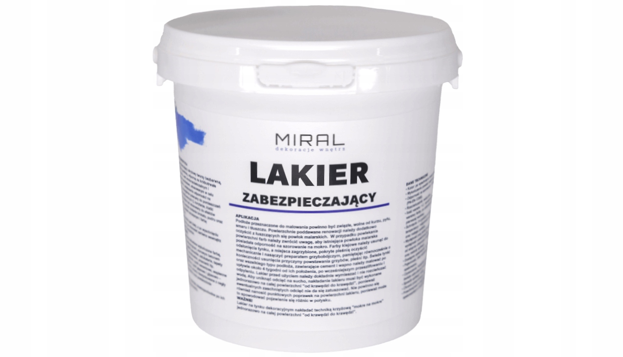 Na pozostałych aukcjach dostępny jest również lakier zabezpieczający Miral, który jeszcze bardziej wzmacnia i chroni powierzchnię tynku przed intensywnymi zabrudzeniami.