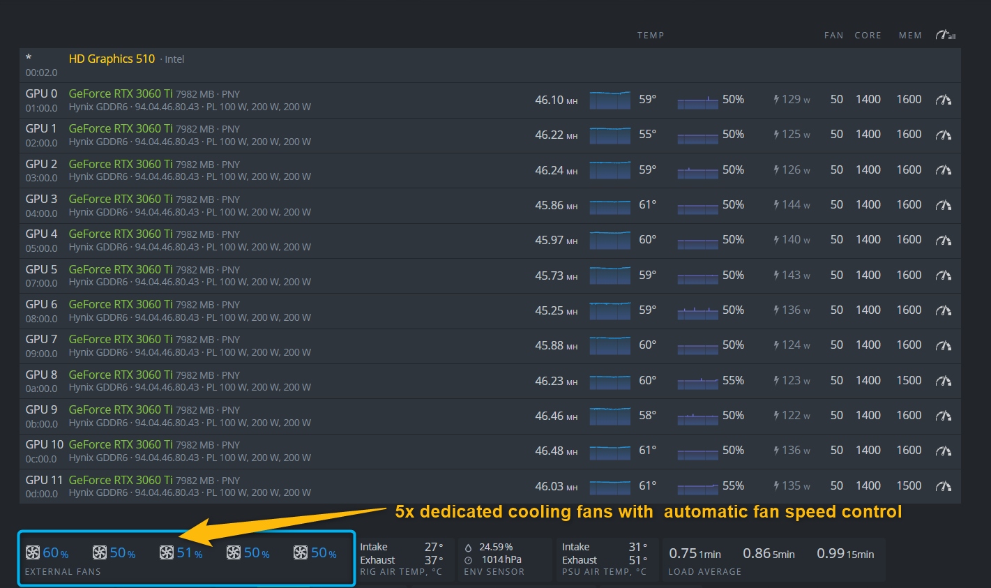 Moc obliczeniowa: 350-370 Mh/s