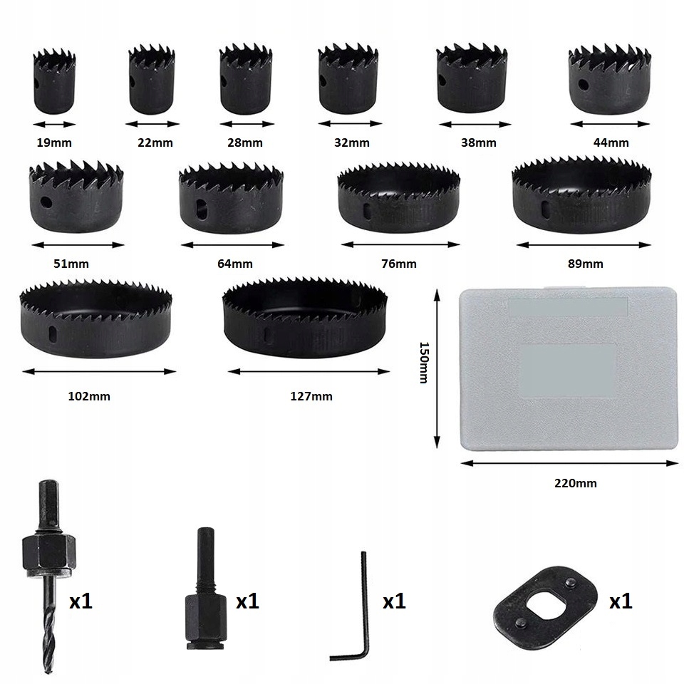 Ten zestaw wyróżnia się od innych zestawów oferowanych na rynku tym, że posiada, aż 16 elementów a wielkość otwornic ma duży bo aż od 19mm do 127mm. Dzięki temu zestawowi, spektrum zastosowań pozwala nam na szerokie rozwiązania podczas pracy.