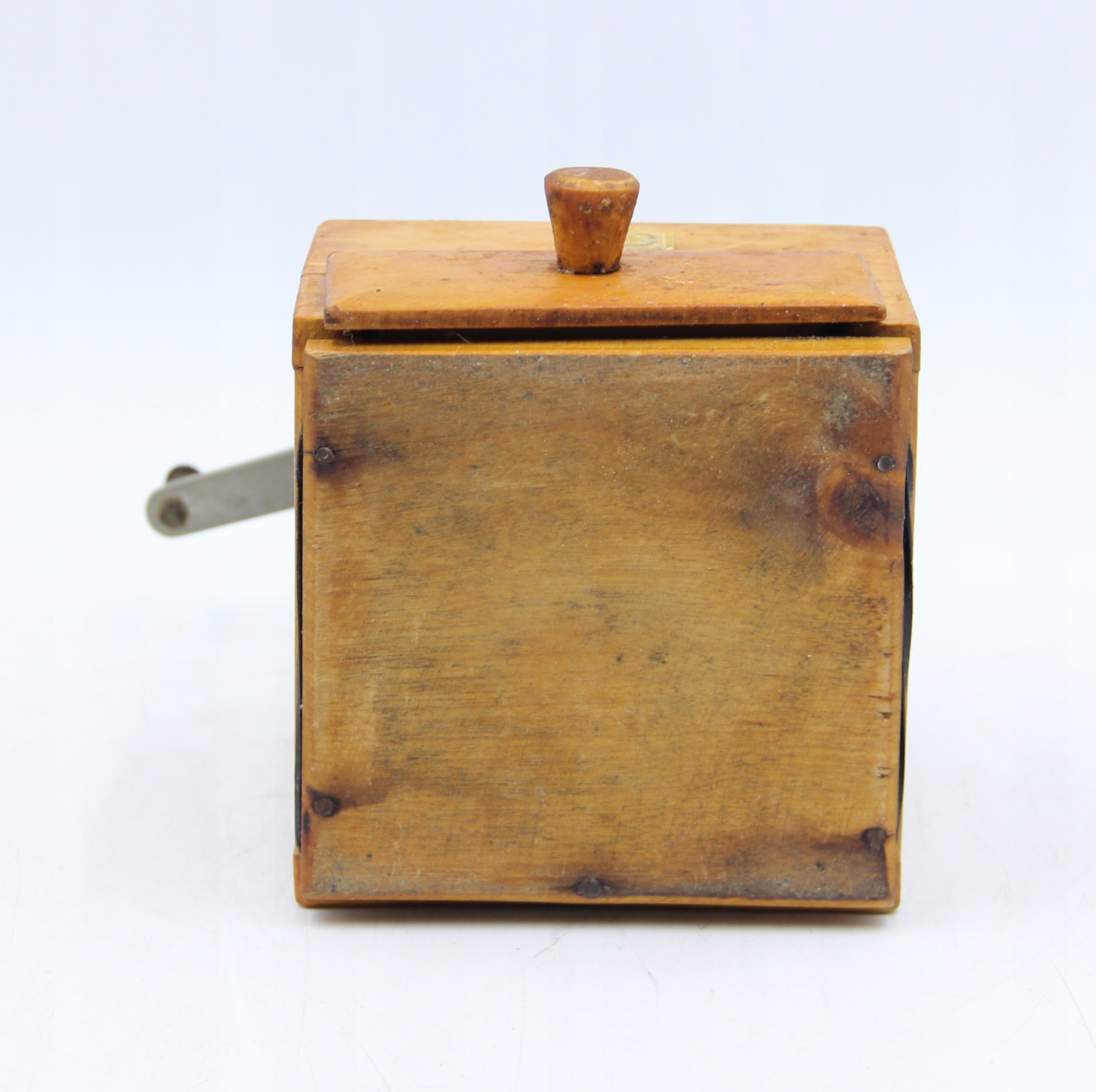 Stary młynek z Częstochowy z okresu PRL. Ślady użytkowania, miejscowe, drobne naloty rdzy na elementach metalowych. Wymiary; wys.16 x 10,5 x 13 cm. Polecam
