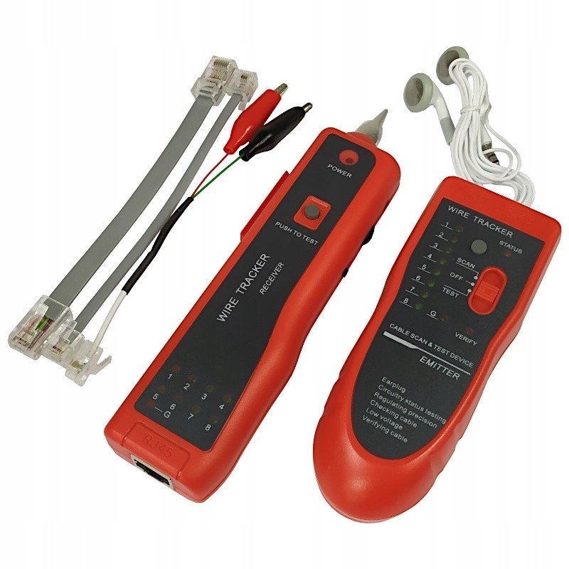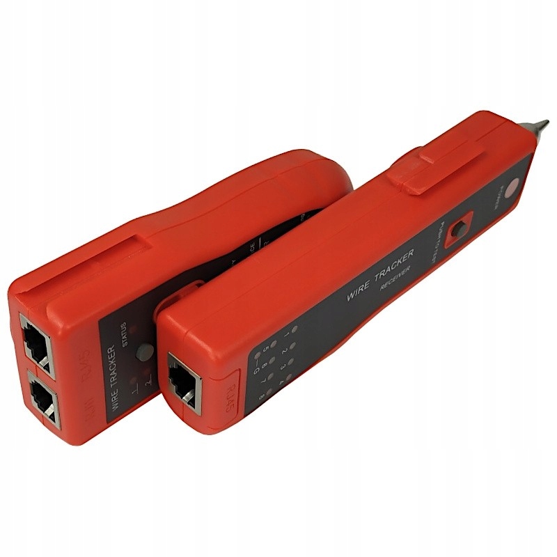 Wysokiej jakości tester okablowania wraz z wbudowanym szukaczem par przewodów.