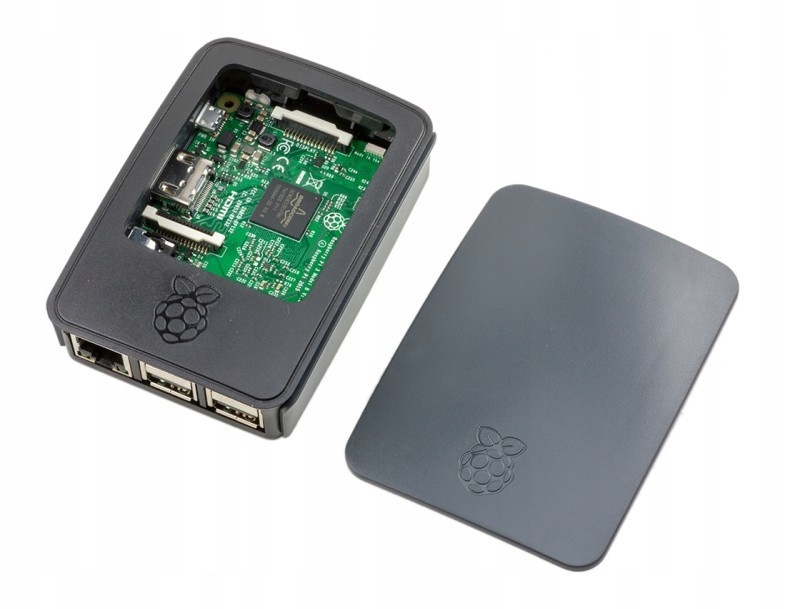 Obudowa do komputerów Raspberry Pi 3 model B+ oraz Raspberry Pi 3 model B, w kolorze czarno-szarym, wykonana z tworzywa sztucznego. Dzięki zdejmowanej górnej części obudowy pozwala na łatwy dostęp do portów: GPIO, interfejsu wyświetlacza oraz kamery.