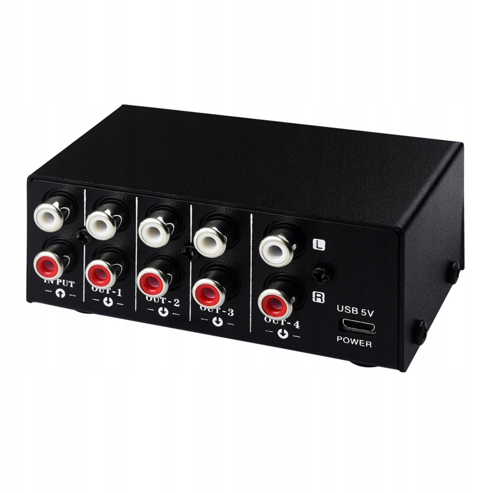Użyj standardowego portu RCA, 1 wejścia stereo, 4 wyjść stereo w tym samym czasie, ujednoliconej regulacji głośności, bez funkcji wzmocnienia dźwięku.