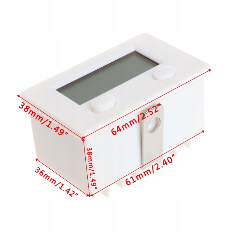 Wyświetlacz typu LCD wysokości cyfr 12 mm, zasilanie licznika przez baterię AA 1,5V. (w zestwie).