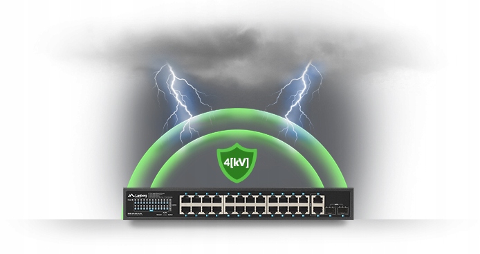 Sam przełącznik, jak i urządzenia do niego podłączone, są wielokrotnie narażane na różne zagrożenia, w tym na wyładowania prądu, które mogą przepływać zarówno przez kable zasilające, jak i sieciowe.