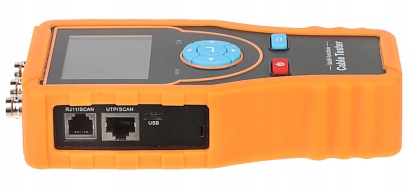 Typowy czas ładowania akumulatora: 3 hCzas pracy na baterii: 16 hWybrane cechy: 2.4 " Wyświetlacz LCD - 320 x 240 px Test kabli i lokalizator kabli : typ kabla, test sekwencji i typu kabla UTP, uszkodzenie złącza RJ45 Test TDR - RJ45 : stan pary, długość, tłumienie, współczynnik odbicia, impedancja, pochylenie - Długości kabla max. 180 m Test TDR 2.0 : Wyszukiwanie punktu uszkodzenia przewodu - Długości kabla max. 1200 m, Wykrywanie podłączonego portu w switchu Test PING : poprawne działanie portu Ethernet kamery IP, poprawność adresu IP Skanowanie sieci IP Identyfikacja portu sieciowego i trybu dupleksu Identyfikacja przewodu w wiązce Detekcja stanu linii telefonicznej Wykrywanie i lokalizacja miejsca przerwania lub zwarcia kabla Miernik poziomu sygnału wideo HD na przewodzie koncentrycznym Automatyczne wyłączanie : 10 ... 120 minutWaga: 0.34 kg - Tester do kabli