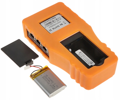 Typowy czas ładowania akumulatora: 3 hCzas pracy na baterii: 16 hWybrane cechy: 2.4 " Wyświetlacz LCD - 320 x 240 px Test kabli i lokalizator kabli : typ kabla, test sekwencji i typu kabla UTP, uszkodzenie złącza RJ45 Test TDR - RJ45 : stan pary, długość, tłumienie, współczynnik odbicia, impedancja, pochylenie - Długości kabla max. 180 m Test TDR 2.0 : Wyszukiwanie punktu uszkodzenia przewodu - Długości kabla max. 1200 m, Wykrywanie podłączonego portu w switchu Test PING : poprawne działanie portu Ethernet kamery IP, poprawność adresu IP Skanowanie sieci IP Identyfikacja portu sieciowego i trybu dupleksu Identyfikacja przewodu w wiązce Detekcja stanu linii telefonicznej Wykrywanie i lokalizacja miejsca przerwania lub zwarcia kabla Miernik poziomu sygnału wideo HD na przewodzie koncentrycznym Automatyczne wyłączanie : 10 ... 120 minutWaga: 0.34 kg - Tester do kabli