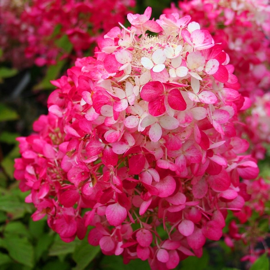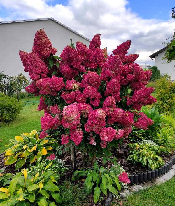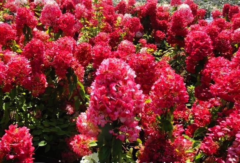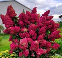 Соцветия крупные, метельчатые сначала белые, но быстро меняют окраску на розовую, в конечном итоге они окрашиваются в цвет малины и красного вина. Они очень декоративные, длина соцветия доходят до 35-40 см. Осенью листья куста приобретают теплый оранжевый цвет оттенки.