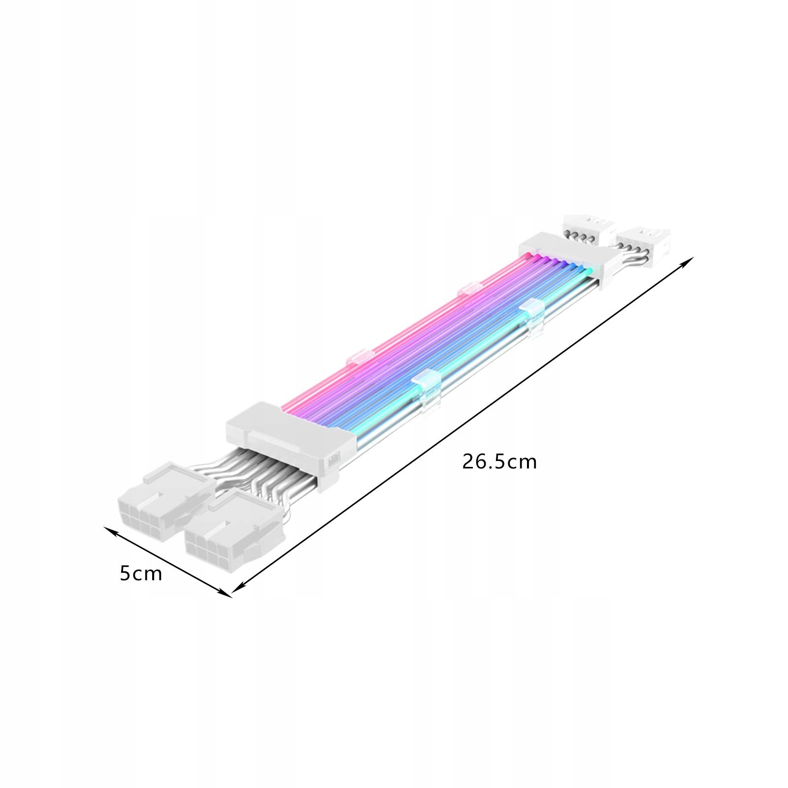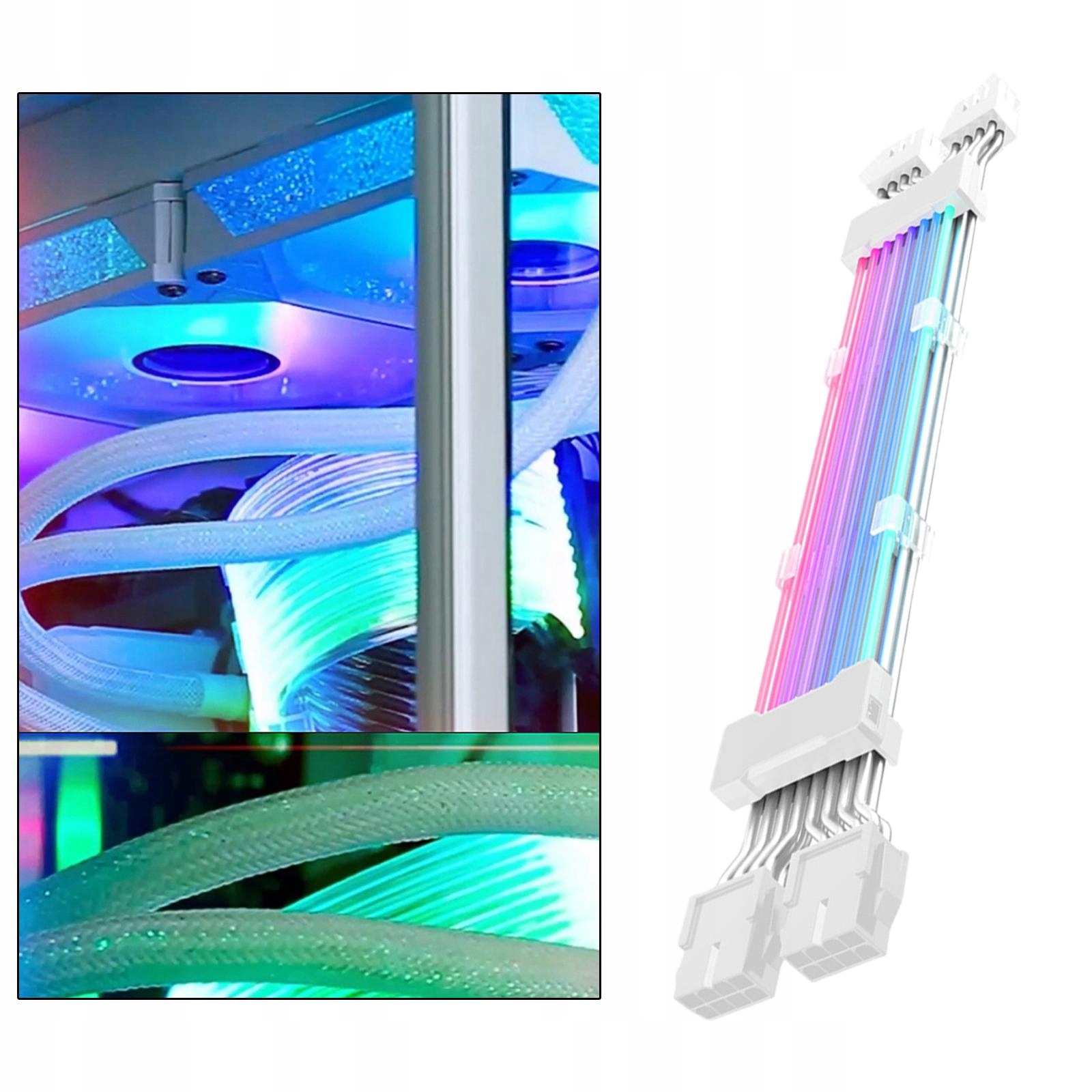 Przedłużacz Kabel RGB Zestaw Przedłużaczy PSU Kabel PCIe do Komputera PC Biały 2x8PIN