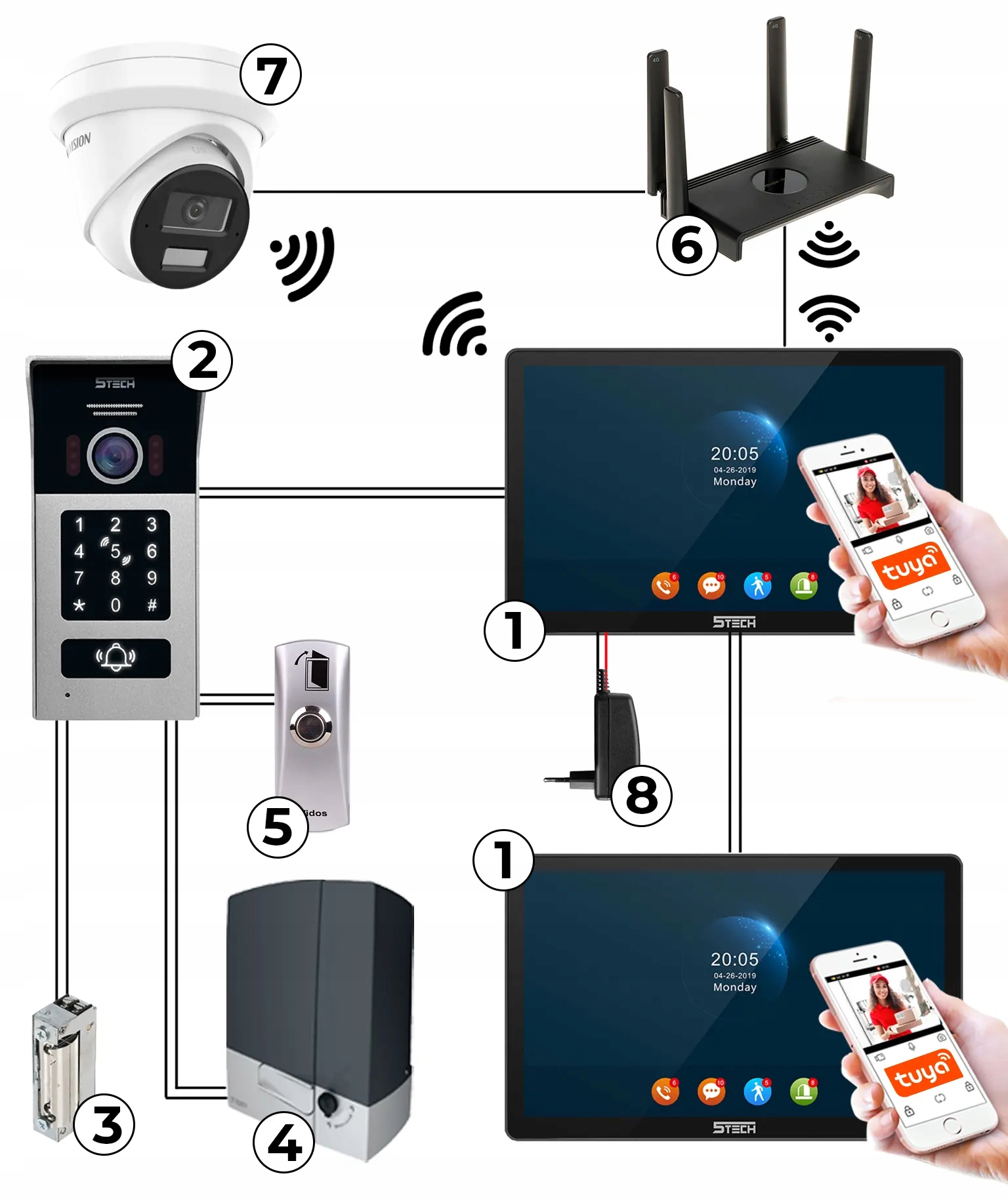 ✅ możliwość rozbudowa całego zestawu do 2 stacji bramowych, 6 monitorów oraz 2 kamer IP