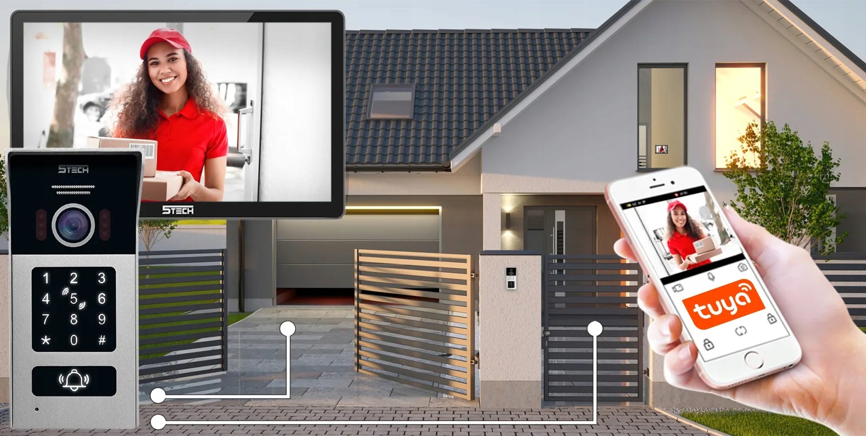 Zestaw wideodomofonowy 5TECH oferuje aż cztery wygodne sposoby kontroli dostępu do posesji, dopasowane do różnych potrzeb domowników.