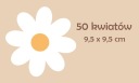 W oferowanym zestawie znajdują się 50 białe kwiatki, każdy o wymiarze 9,5 cm x 9,5 cm.