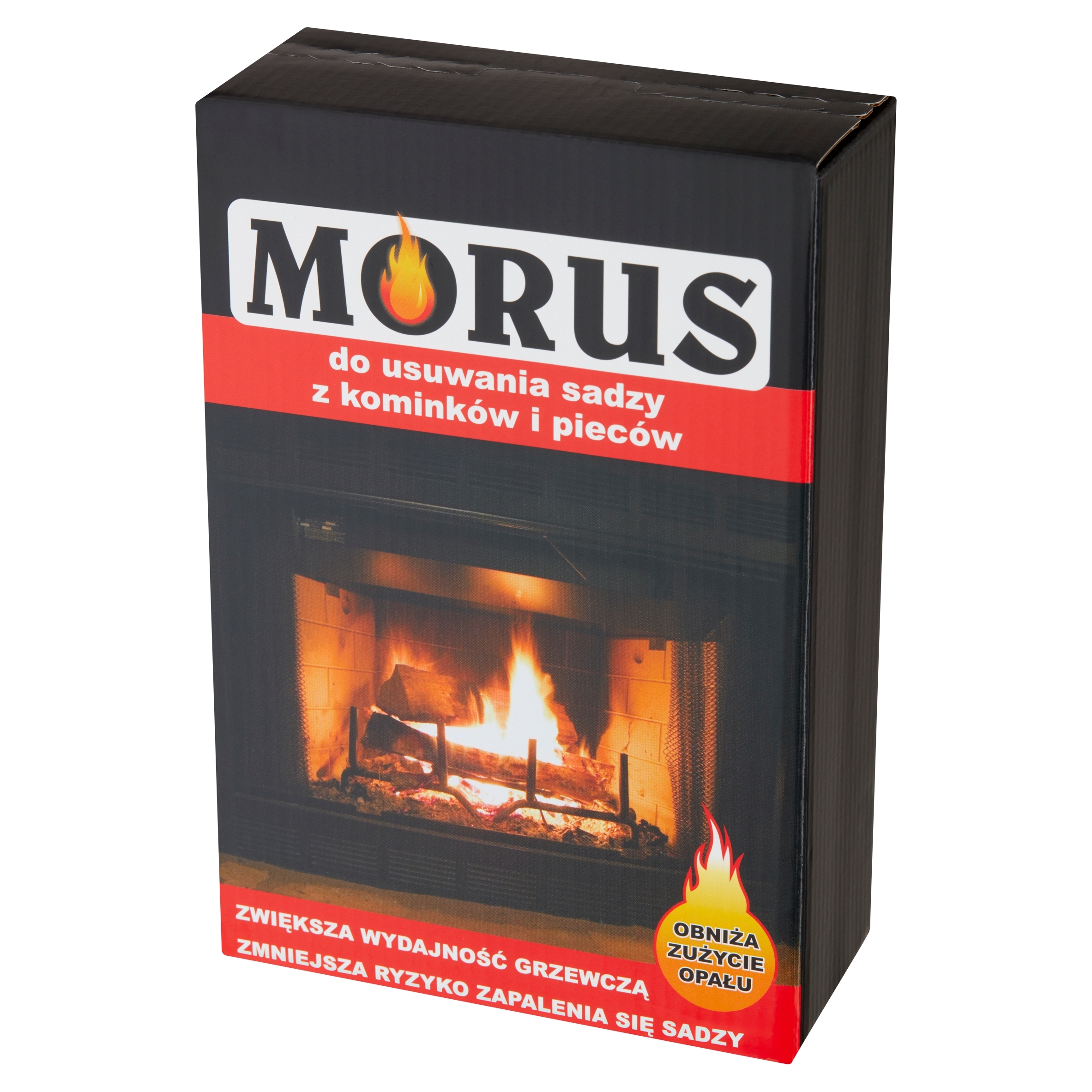 Po rozgrzaniu przewodów kominowych wsypać 50g preparatu (5 łyżek stołowych) do paleniska na dobrze rozpalone paliwo.