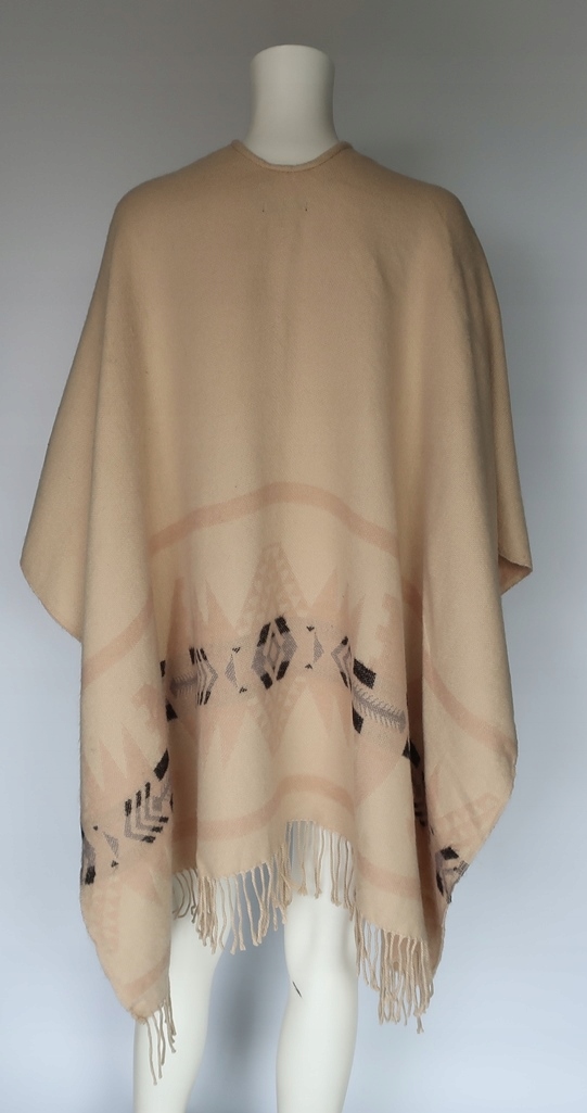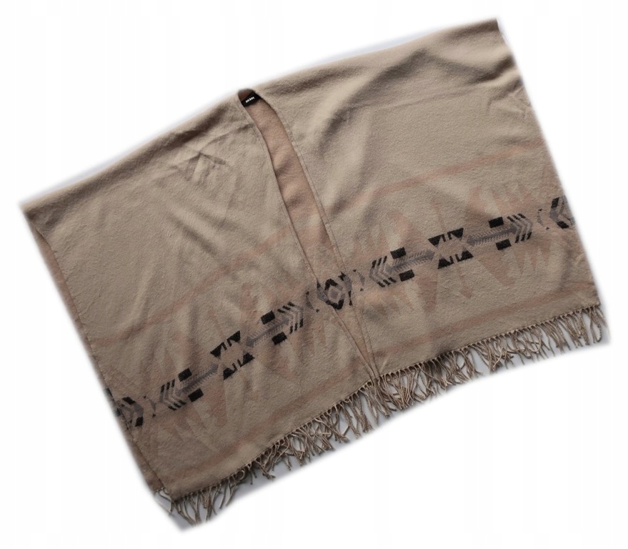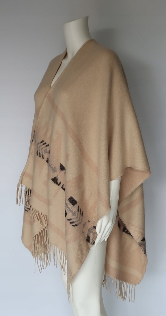 PONCHO MARKI BIKBOK - ELEGANCKIE, BEŻOWE, OZDOBIONE FRĘDZLAMI,