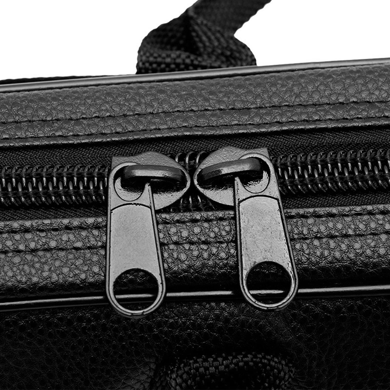 Wysokiej jakości materiał: wodoodporna i odporna na zużycie tkanina Oxford + materiał skórzany, dwugłowa metalowa klamra do elastycznego przechowywania, wbudowany bawełniany materiał antykolizyjny pochłaniający wstrząsy, wysokiej jakości wyściółka z tkaniny poliestrowej odporna na zużycie i oddychająca.