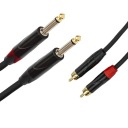 Model RCAJM to kabel którego końcówki zakończone są z jednej strony dwoma pozłacanymi RCA, zaś z drugiej dwom jackami mono 6,3mm.