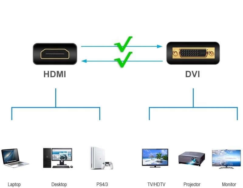 Wysokiej jakości kabel służący do przesyłania obrazu pomiędzy portami DVI i HDMI (w obydwie strony). Może konwertować HDMI na DVI lub odwrotnie, co jest bardzo wygodne do oglądania filmów w domu lub grania w gry na dużym ekranie.