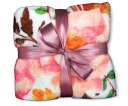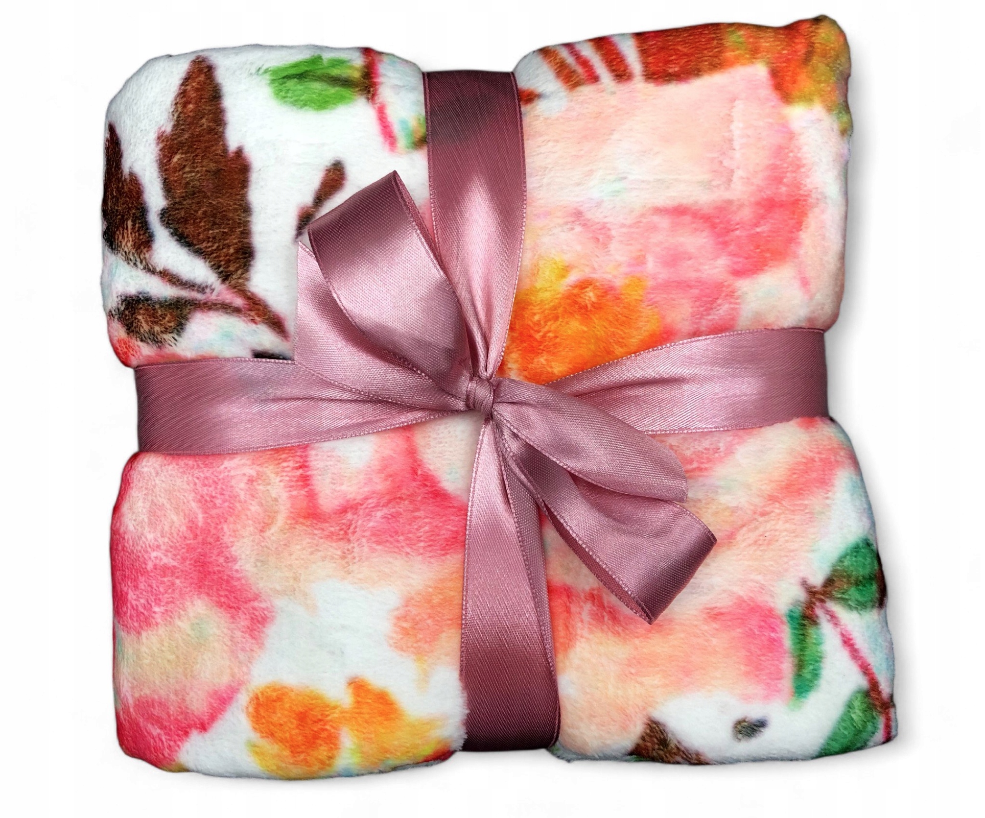 Kocyk jest w eleganckim celofanie i przewiązanej satynowej tasiemką. Idealnie sprawdziło się jako prezent dla rodziców.