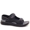 Мужские сандалии на липучке черного цвета на плоском дне. Они идеально подойдут как повседневная обувь в летнее, жаркое время года дней. Простой фасон будет соответствовать толщине стопы . Легкая подошва приводит к увеличению выносливости обуви.