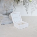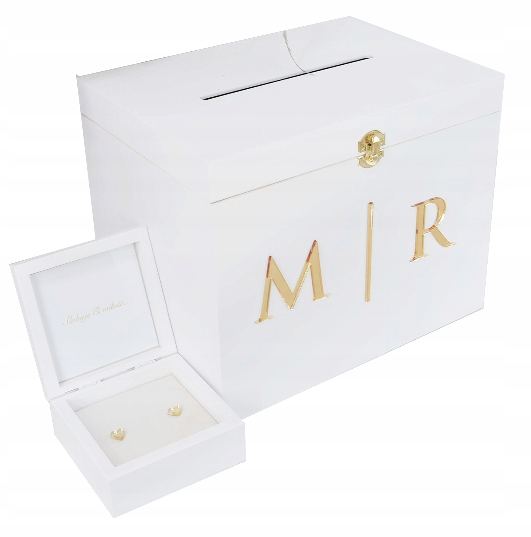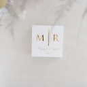 Zaprojektowane z myślą o najważniejszym dniu Twojego życia, nasze pudełko łączy w sobie subtelność białego koloru z blaskiem złotych inicjałów. To połączenie tworzy harmonijną i luksusową estetykę, która doda wyjątkowego czaru i elegancji do Twojej ceremonii ślubnej.