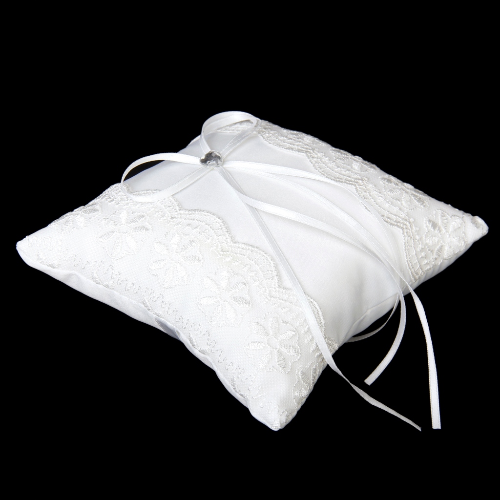 Biała koronkowa zdobiona poduszka na obrączki ślubne Poduszka 15cmx15cm