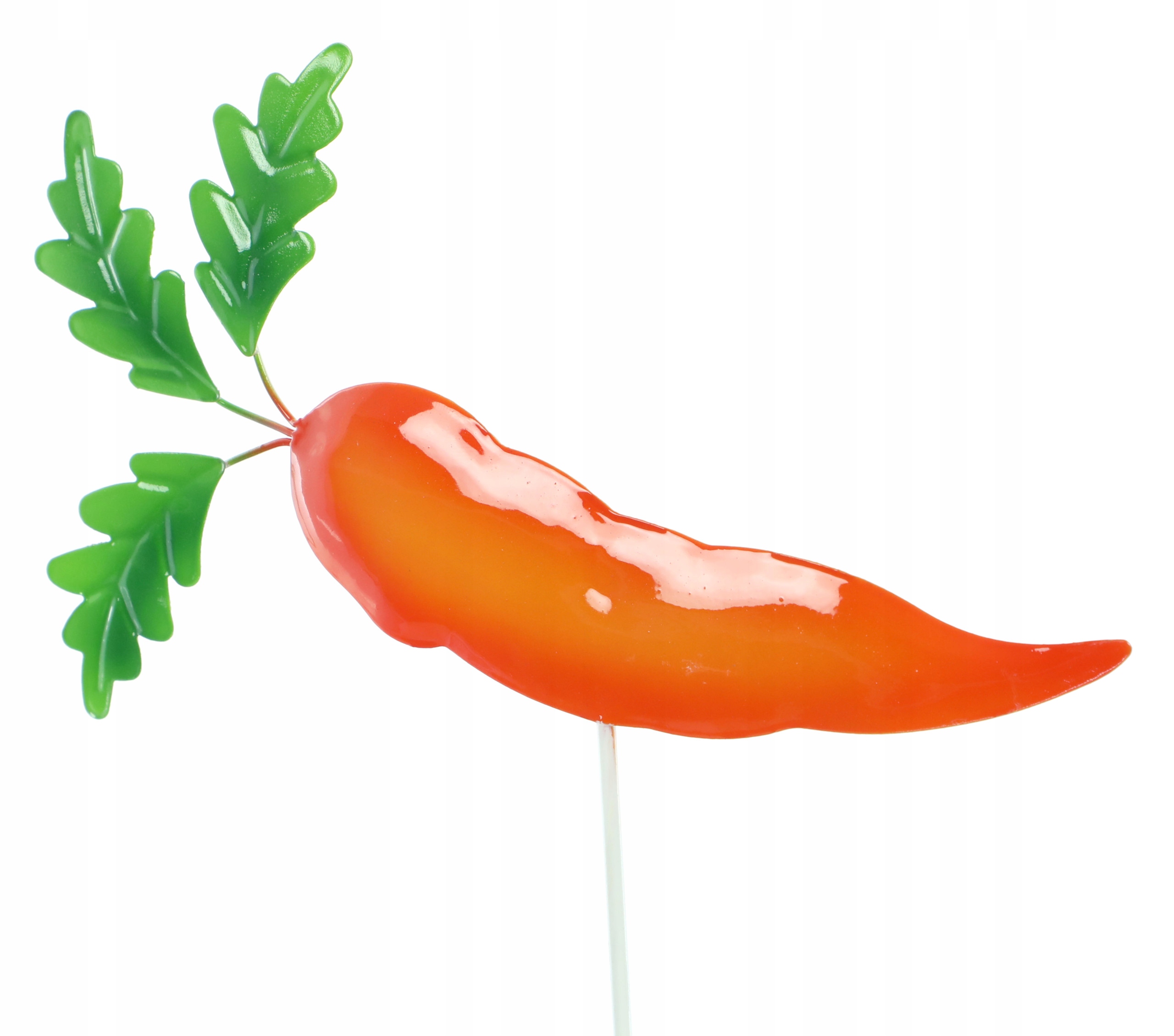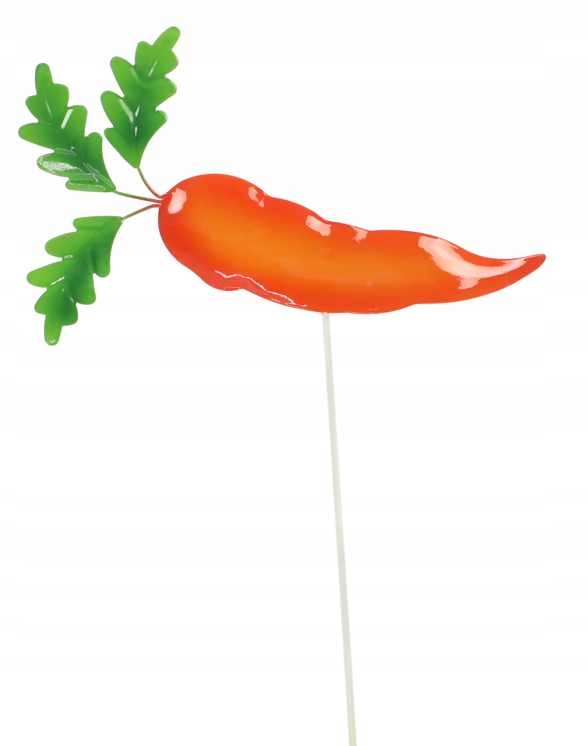 Warzywo zostało przymocowane do pręta, który wystarczy wbić w ziemie. Z łatwością, gdy tylko zapragniemy umieścić ozdobę w innym miejscu możemy ją wyjąc i przesunąć.