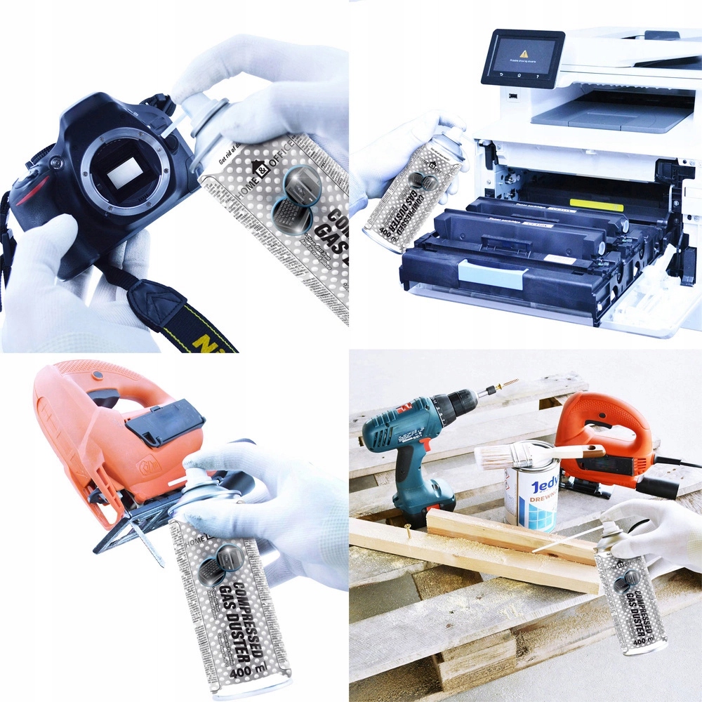 Preparat zawierający mieszaninę ekologicznych gazów służący do usuwania kurzu, zabrudzeń, płynów i wszystkich innych zanieczyszczeń, które przylegają luźno do czyszczonych powierzchni z trudno dostępnych miejsc strumieniem sprężonego gazu pod wysokim ciśnienie. Produkt nie zawiera freonu, bezzapachowy, całkowicie biodegradowalny. Doskonały produkt do domu, warsztatu i biura!