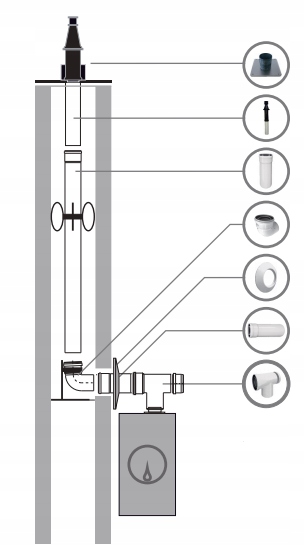 System odprowadzania spalin z tworzywa sztucznego PPs do kotłów kondensacyjnych. Może być stosowany jako wkład kominowy w połączeniu z systemami jednościennymi lub jako samodzielny system. Dodatkowo istnieje możliwość instalacji w zanieczyszczonym szachcie.