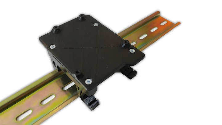 Zestaw umożliwia płaski montaż Płytki Arduino UNO względem szyny DIN 35. Arduino może być zamontowane poziomo jak i pionowo względem szyny DIN.