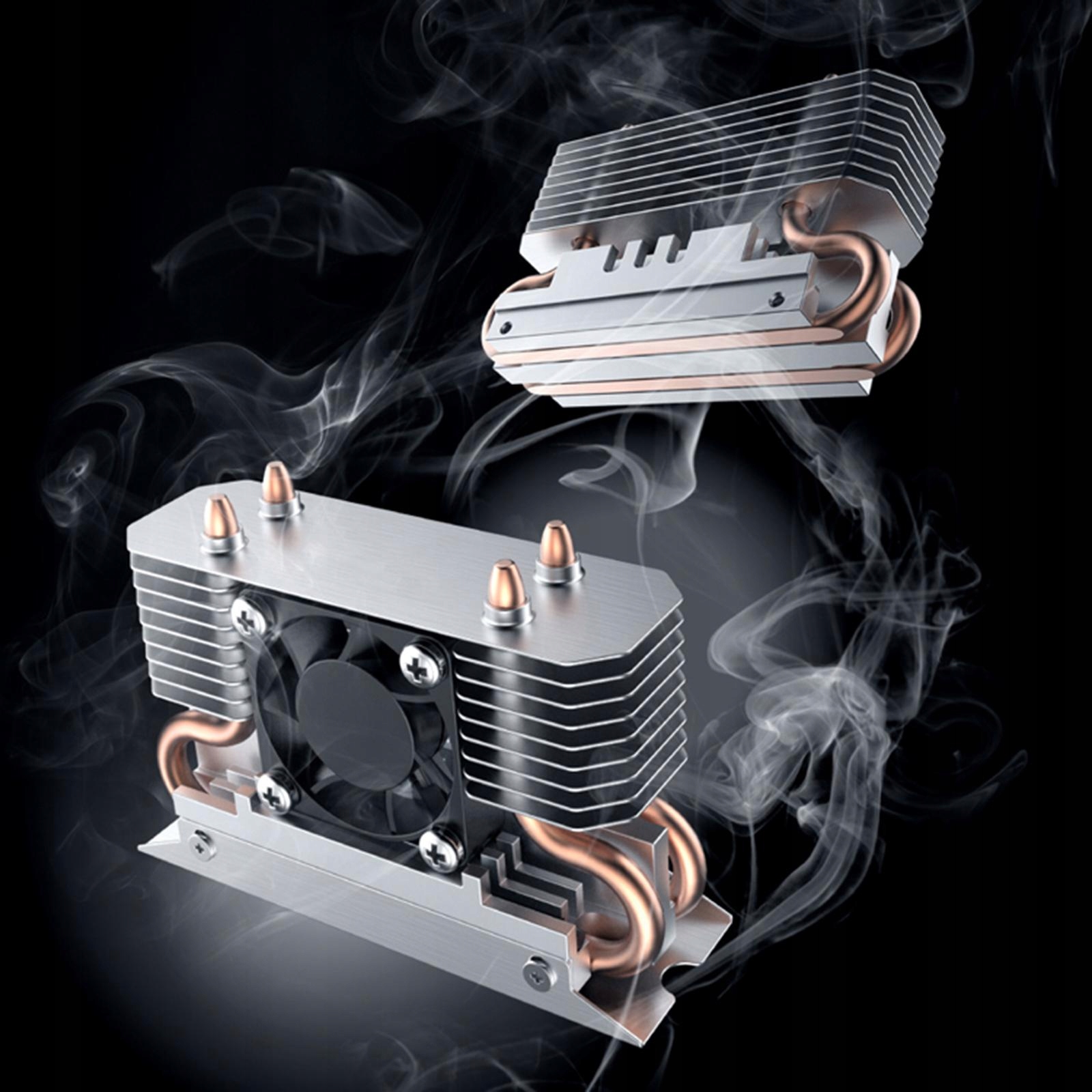 [M.2 SSD]: podwójna miedziana rurka cieplna, efektywne odprowadzanie ciepła. Rurka cieplna o bezpośrednim kontakcie na dole radiatora może szybko przenosić ciepło z żeberka wykonanego w całości z aluminium. Czyste aluminium zwiększa obszar rozpraszania ciepła i przyczynia się do dobrego efektu rozpraszania ciepła przez dysk SSD.