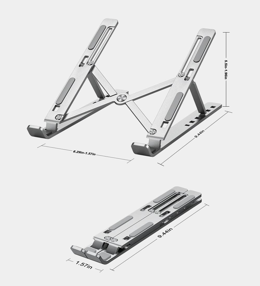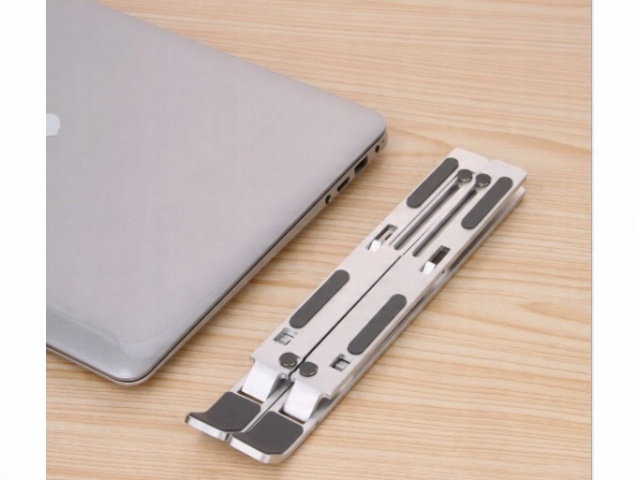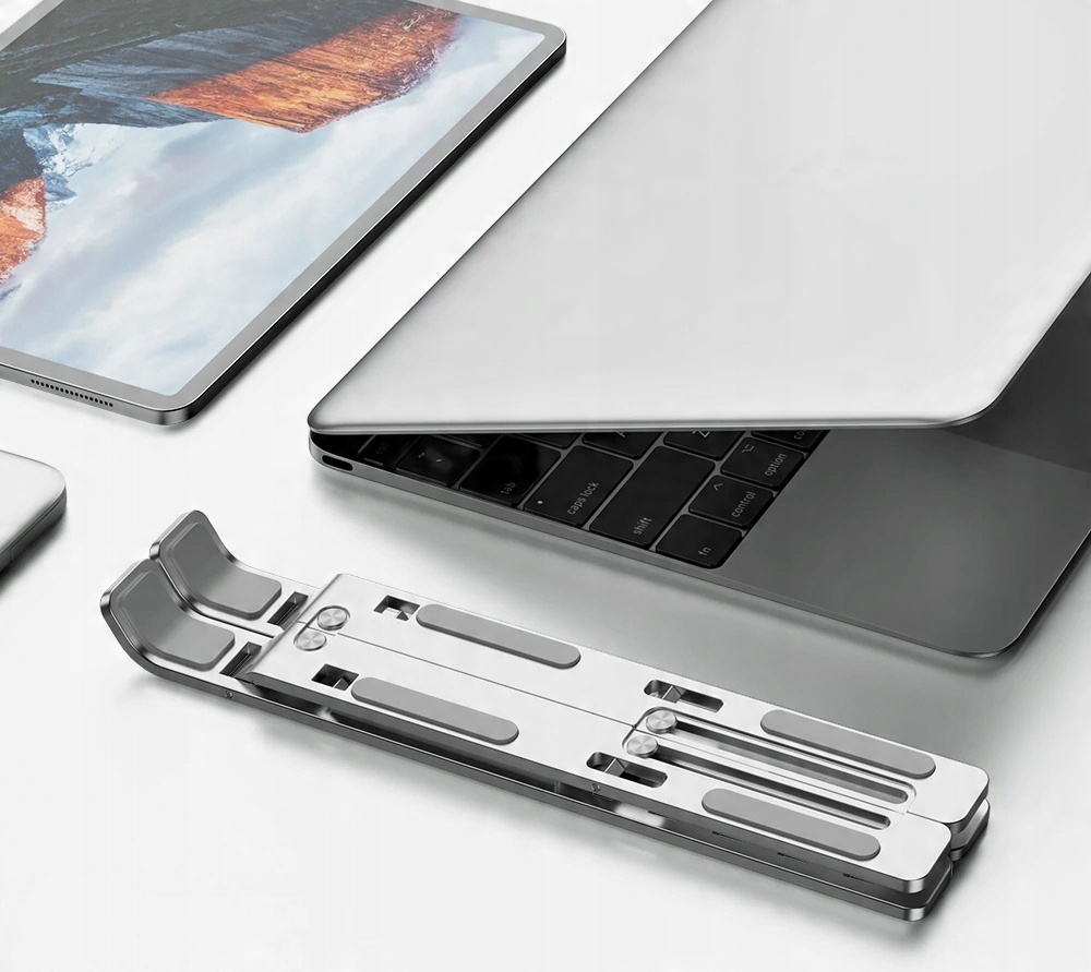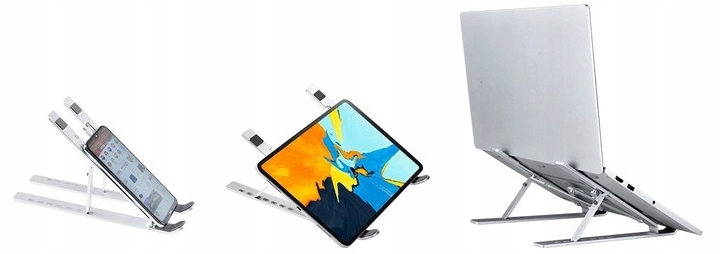 Stojak jest składany, dzięki czemu po złożeniu ma bardzo małe gabaryty. Zmieści się do każdej szuflady czy torby na laptopa.
