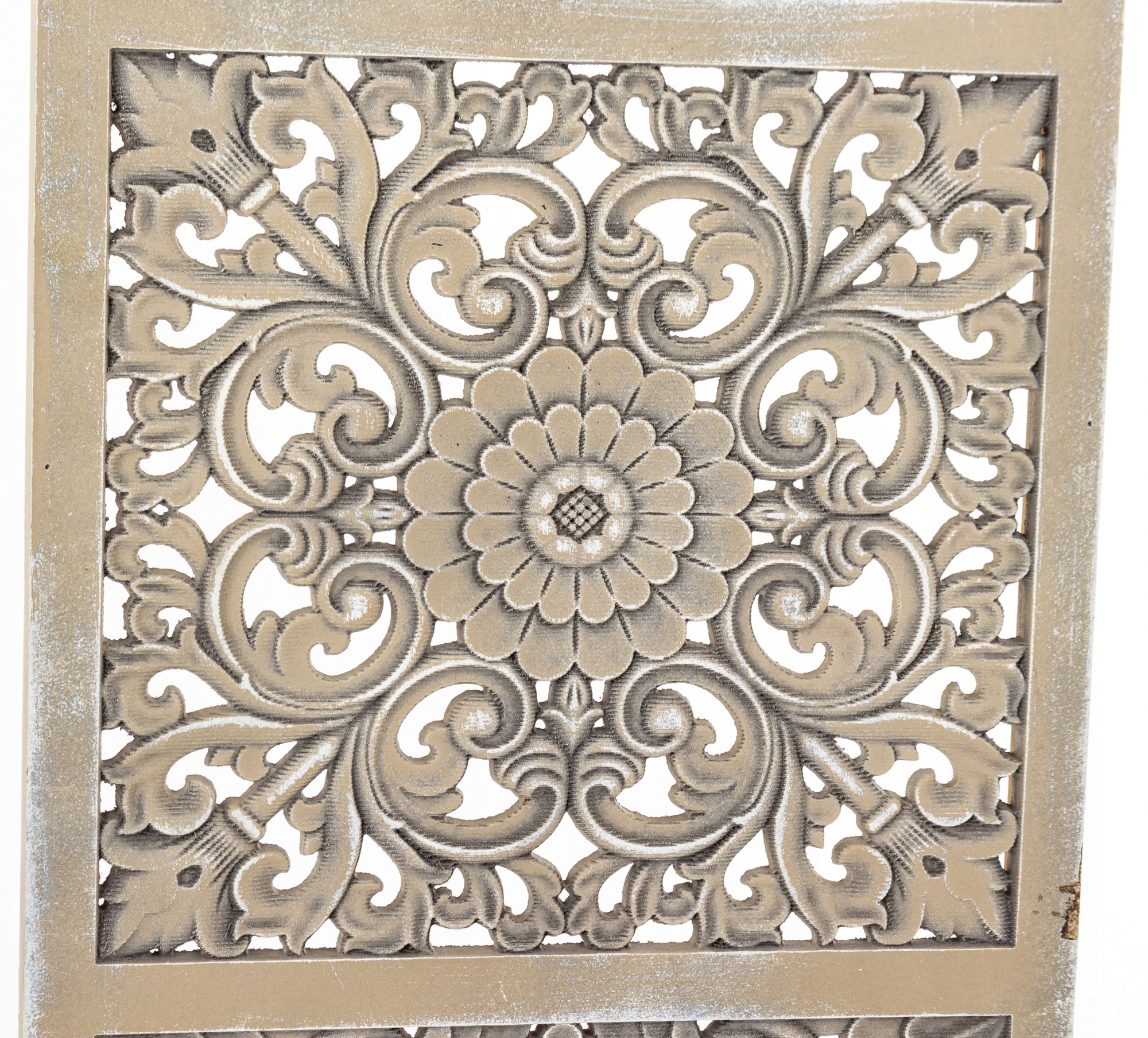 Efektowna dekoracja do zawieszenia w domu, biurze, salonie piękności. Uwagę przyciąga oryginalne wzornictwo oraz spokojna kolorystyka. Dekoracja nosi ślady zużycia i starzenia.