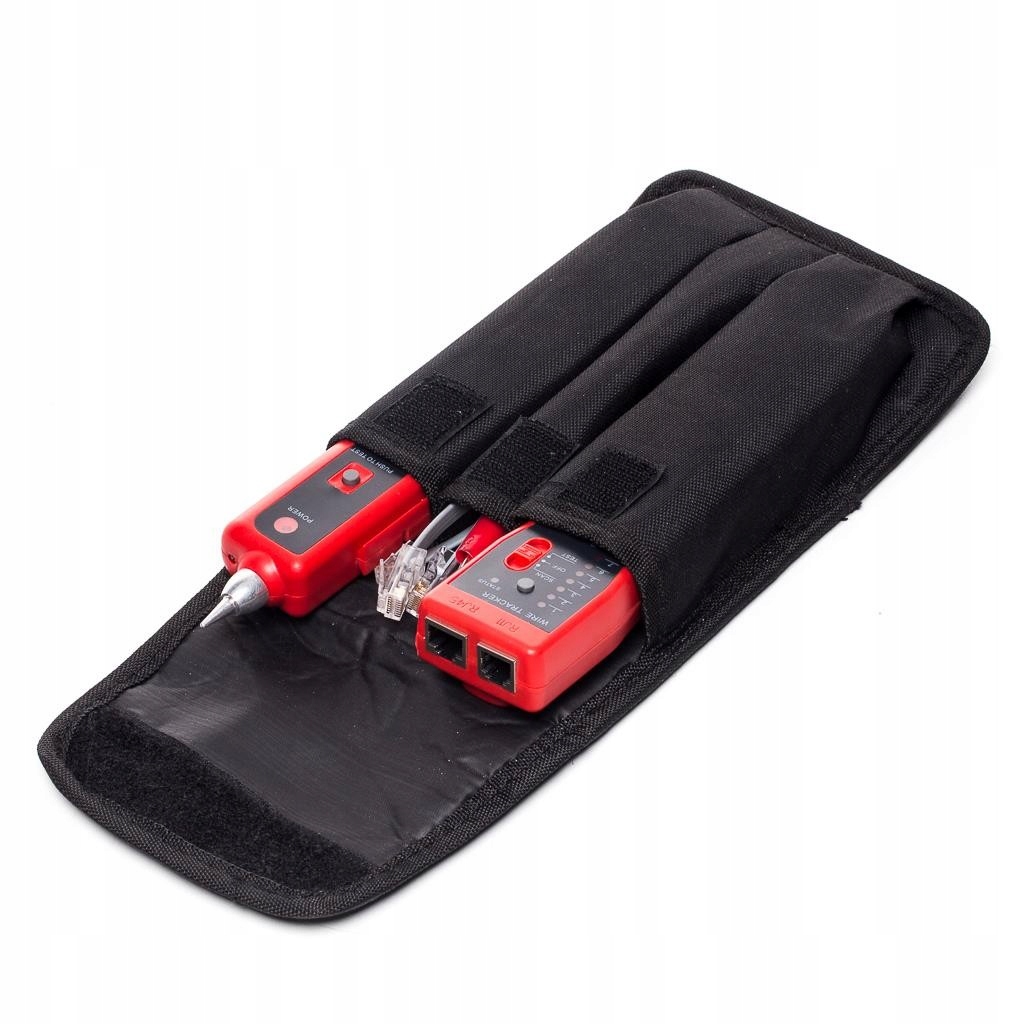 Tester sieciowy do komplesowego testowania połączeń sieciowych. Przeznaczony do testowania połączeń opartych na przewodach LAN typu skrętka, kabli telefonicznych, kabli koncentrycznych lub innych przewodowych połączeń elektrycznych. Szczególnie polecany do sieci komputerowych. W zestawie znajduje się jednostka główna, sonda do wyszukiwania przewodów z terminatorem.