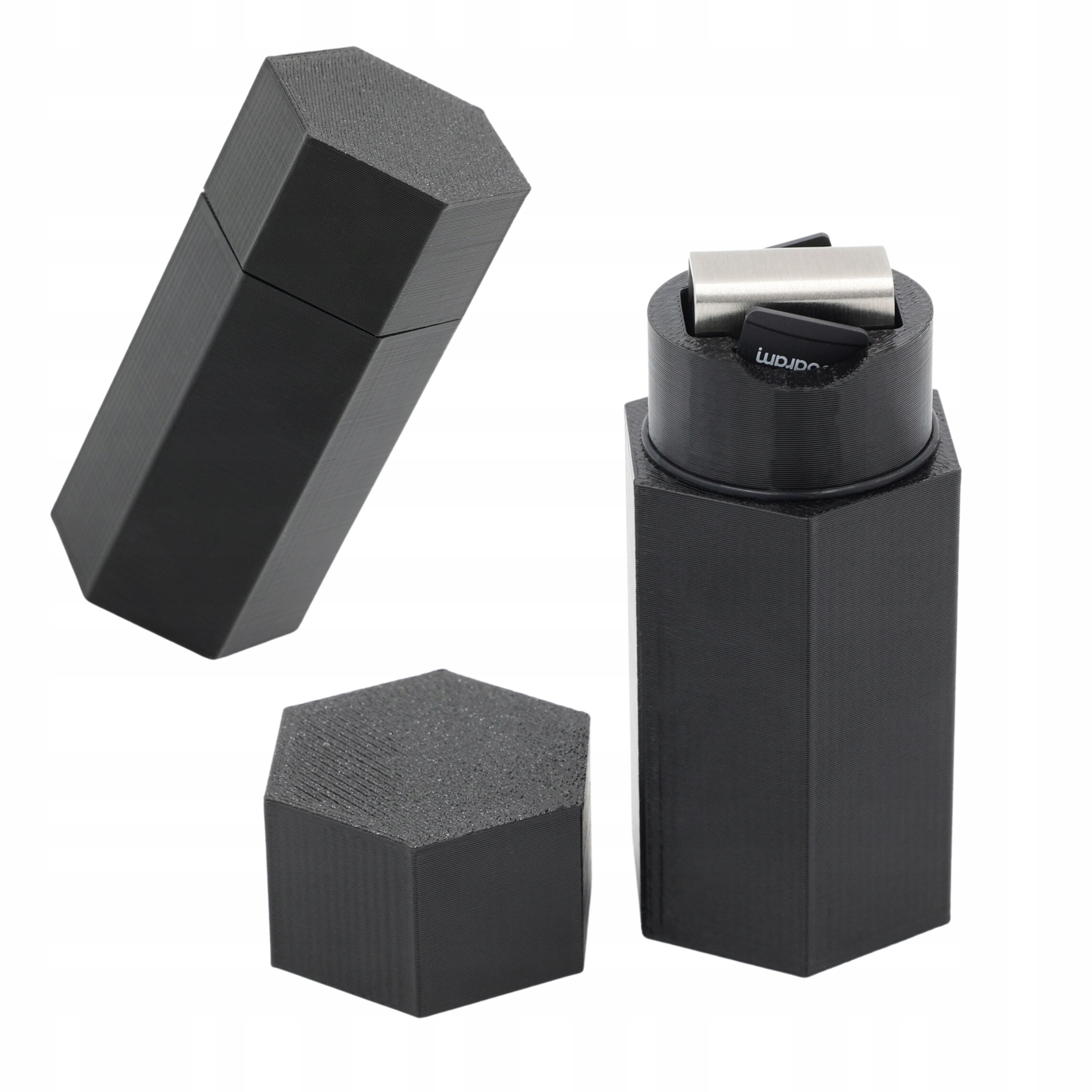 Przedmiotem aukcji jest etui w formie zamykanej tubki z uszczelką zabezpieczającą w kolorze czarnym.