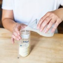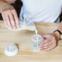 Po skończonym karmieniu, mleko z kolektora możesz zamknąć w nim za pomocą szczelnej przykrywki i odstawić do lodówki bądź przelać do woreczka i zamrozić.