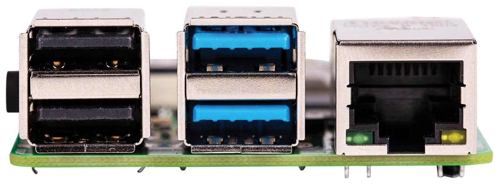 Długo oczekiwana, najnowsza wersja popularnego minikomputera Raspberry Pi 4 model B. Model ten posiada wydajniejszy procesor, czterordzeniowy 64-bitowy ARM-8 Cortex-A72 Broadcom BCM2711 1,5 GHz, dwa porty microHDMI, dwa porty USB 3.0 i 2 porty USB 2.0, a także złącze zasilania USB-C. Dodatkowo płytka wyposażona jest w dwuzakresowe Wi-Fi 2,4 GHz i 5 GHz, Bluetooth 5/BLE, port Ethernet o prędkości do 1000 Mbps i możliwość zasilania poprzez PoE. Pozostałe cechy pozostają takie same jak w modelu 3 B+. Na płytce znajdują się jeszcze: 40-pinowe złącze GPIO (2x20 pin, raster: 2,54), slot microSD na karty pamięci, złącza DSI i CSI oraz cztery otwory montażowe.