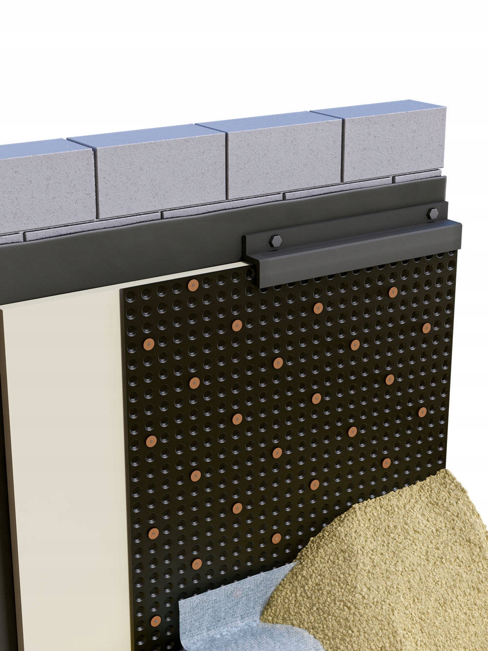 Listwa jest niezbędna do profesjonalnego połączenia kubełkowej folii HDPE z elewacją. Stanowi ona element składowy systemu hydroizolacji budynku.