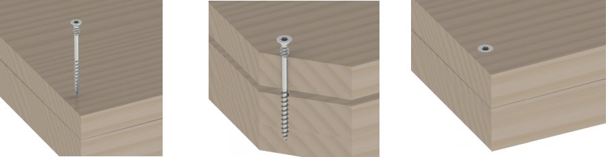 Uniwersalny wkręt z częściowym gwintem, z gwintem pod łbem o silnym mocowaniu do szybkich, ścisłych połączeń drewno-drewno w meblarstwie, konstrukcjach wewnętrznych lub konstrukcjach drewnianych w pomieszczeniach suchych lub osłoniętych