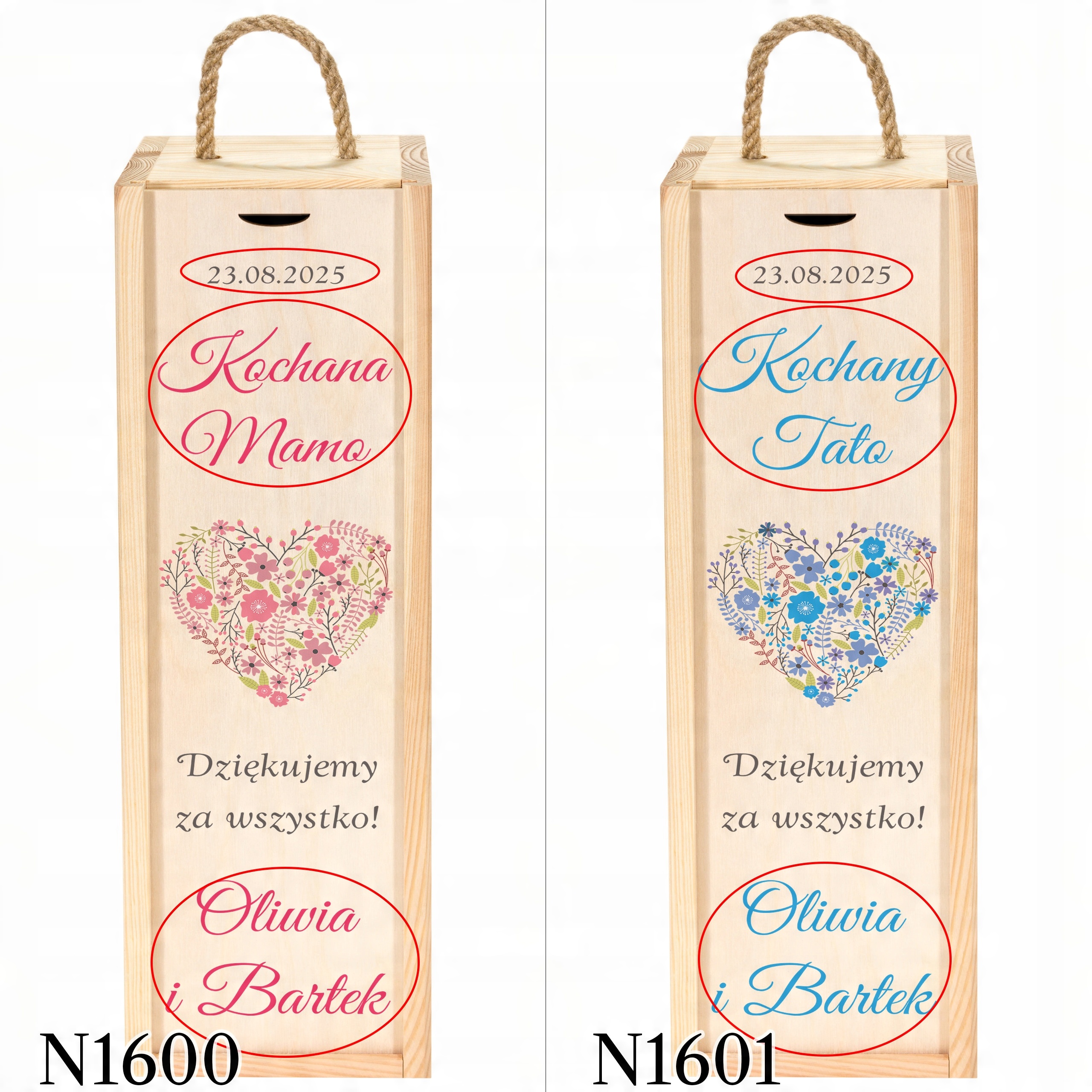 Zastąp tradycyjne kwiaty na oryginalny prezent jakim jest personalizowana skrzynka na wino z Twoimi życzeniami.