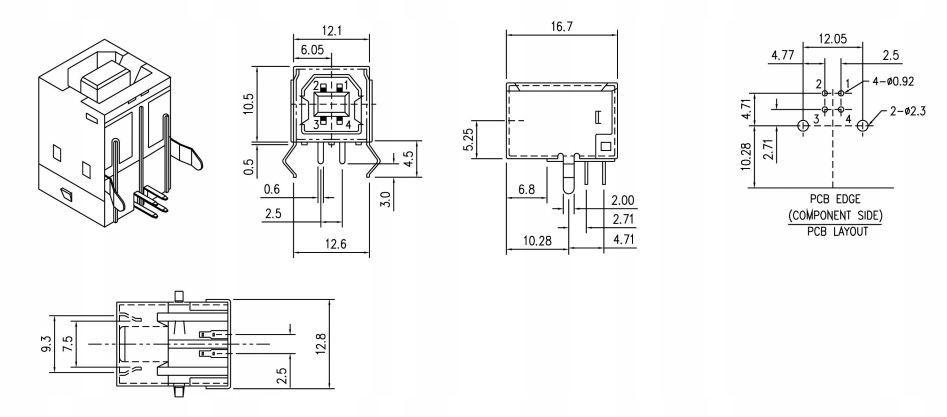 Модель ТИП B USB РАЗЪЕМ ДЛЯ ПРИНТЕРА СБОРКИ