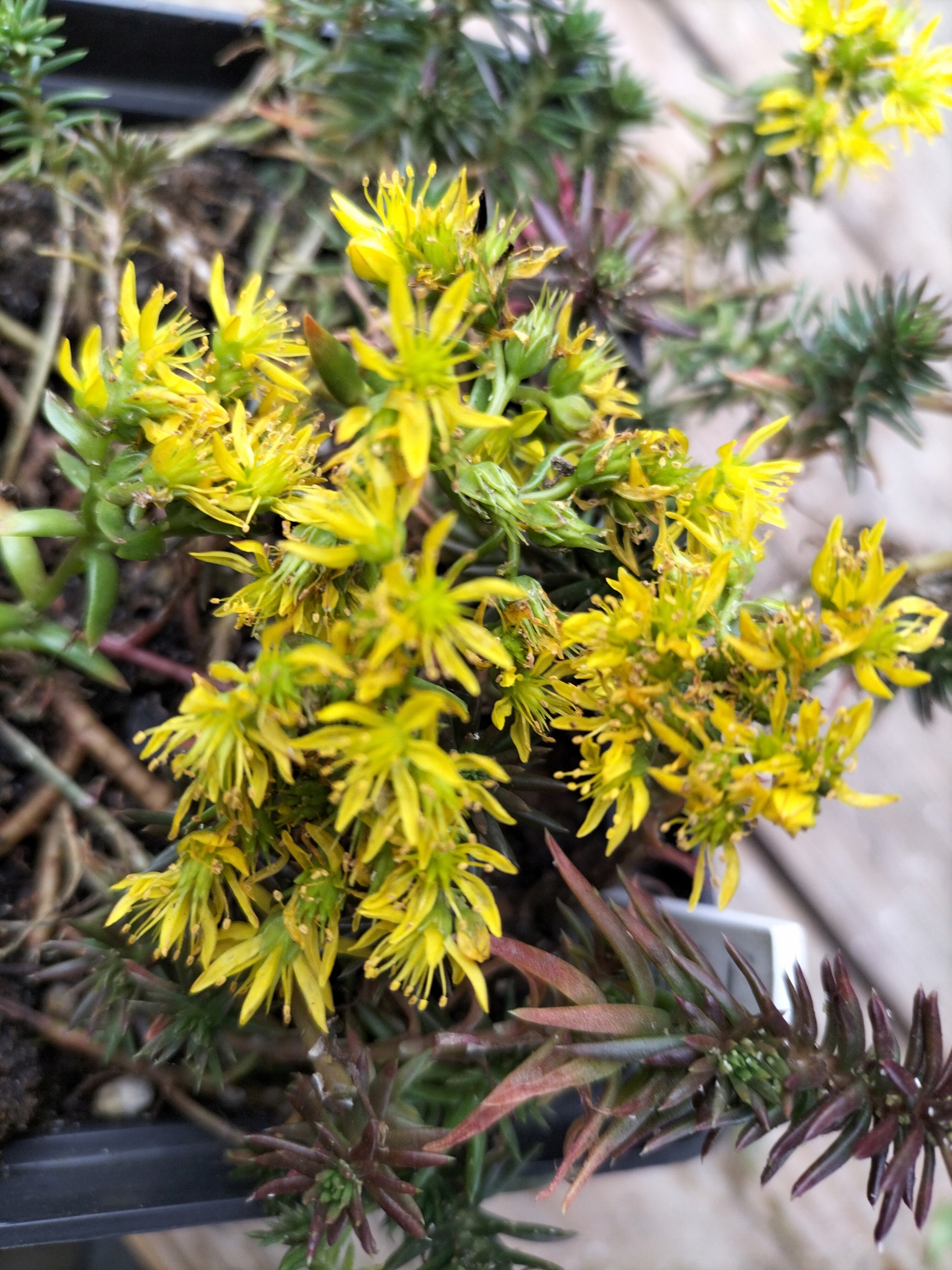 Pochodzi z Danii i tworzy piękne, gęste poduszki.Kwiaty jasnożółte pojawiają się w czerwcu.Liście równowąskie, ciemnozielone. Zabarwiją się na brązowo pod koniec lata.