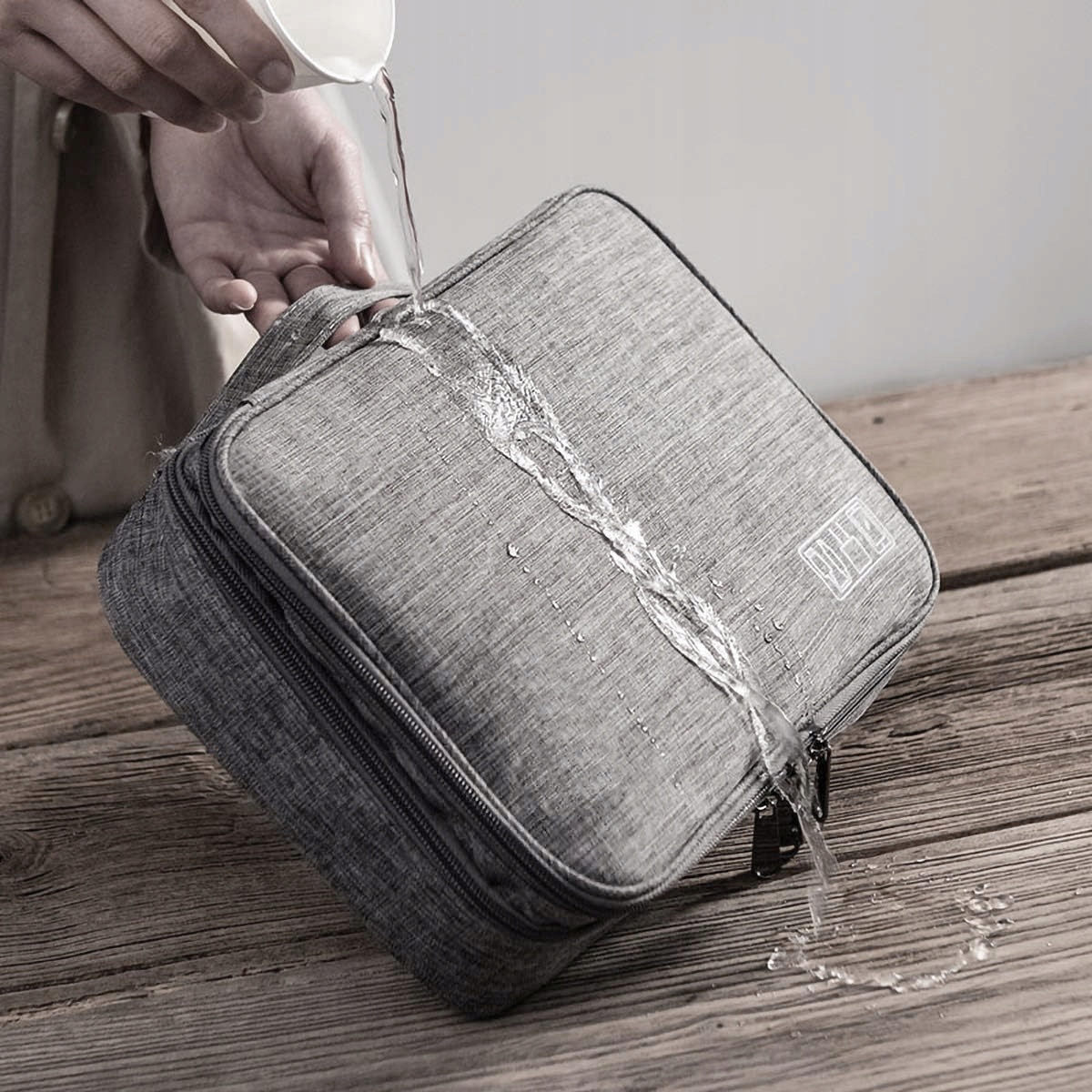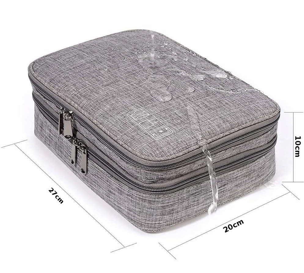 Uporządkuj i zorganizuj drobną elektronikę, w jednym, estetycznym etui, które możesz wszędzie ze sobą zabrać. Wysokiej jakości organizer na kable, przewody, karty pamięci i wszelkie inne akcesoria do urządzeń elektycznych. Produkt posiada 2 duże komory na zamek, mnóstwo schowków i zakładek służących do przechowywania niezbędnych akcesoriów. Etui na kable i elektronikę z pętelką na rękę, z szarego melanżowego materiału na suwak.