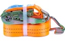Pas transportowy o najwyższej wytrzymałości oraz najdłuższy jaki posiadamy w sprzedaży w naszym sklepie. Długość całkowita pasa (czyli długość pasa oraz długość klamry łącznie) to aż 4 metry dzięki czemu można nim zabezpieczać nawet bardzo gabarytowe ładunki. Szerokość pasa wynosząca 25 mm oraz jego wytrzymałość na poziomie 1 tony daje możliwość opasania nim nawet bardzo ciężkich towarów. Sprawdzi się przez to zarówno przy użytku profesjonalnym w firmach transportowych, na budowach ale również przy przewozach prywatnych. Wszystkie elementy metalowe w tym haki i grzechotka zostały wykonane z bardzo mocnej stali odpornej na korozję. Każdy element pasa transportowego jest zatem gotów do pracy z najwyższymi obciążeniami.