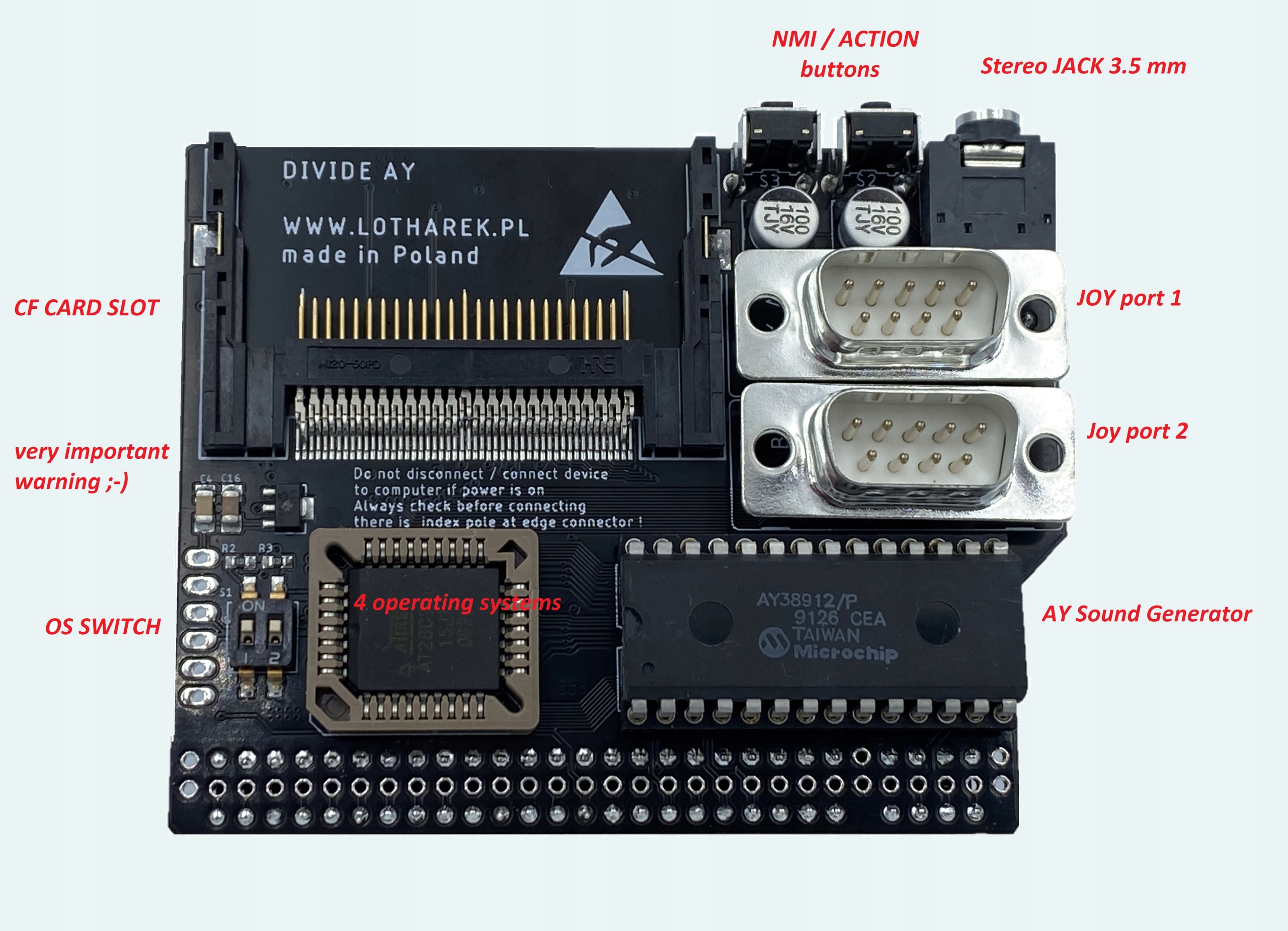 DivIDE _AY-это интерфейс COMPACT FLASH, который передает на совершенно новый уровень. Потому что время не оказывает положительного влияния на стареющие носители, как аудиокассеты или дискеты, многие энтузиасты ZX Spectrum просто выбирают эмуляции свою коллекцию программного обеспечения на вкладке CompactFlash и наслаждаться любимыми играми версии демонстрационных и инструментов в том, как они должны быть запущены - и даже лучше. Быстро и безболезненно :-)