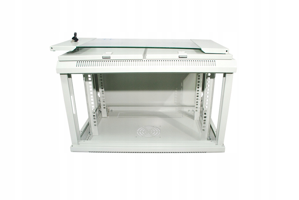 Szafa rackowa znajduje bardzo szerokie zastosowanie, nadaje się idealnie do montażu systemu monitoringu CCTV, instalacji okablowania strukturalnego np. w firmie lub domu. Nadaje się również do zabudowy pasywnych i aktywnych urządzeń sieciowych, a dzięki dostępności wielu akcesoriów mamy dowolną możliwość jej konfiguracji. Szafa posiada specjalne otwory wentylacyjne na panelu czołowym, opcjonalnie możemy również zainstalować dedykowany wentylator dla uzyskania lepszego obiegu powietrza między urządzeniami. Drzwiczki frontowe wykonane zostały z blachy stalowej z wklejoną szybą hartowaną i zamontowanym zamkiem z dwoma kluczykami, a dzięki wypinanym zawiasom są w pełni demontowalne. Panele boczne posiadają zatrzaski, które umożliwiają demontaż i uzyskanie większego dostępu do urządzeń zainstalowanych wewnątrz szafy. Opcjonalnie dla zabezpieczenia paneli bocznych możemy dokupić dedykowane zamki. Tylna ścianka posiada cztery otwory do zawieszania szafy. Wewnątrz szafa posiada regulowany rozstaw szyn pionowych, a w podłodze i suficie znajduje się przepust kablowy.