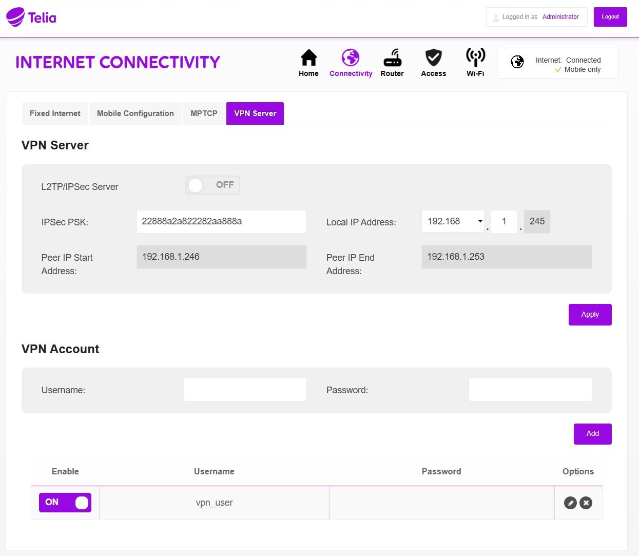 Дополнительные характеристики VPN-сервер