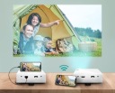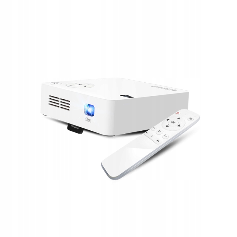 Idealny na kemping i w podróży, ten kompaktowy projektor mieści się w dłoni, waży około 400 gramów i ma wymiary około 11,54 x 11,54 x 3,2 centymetrów.