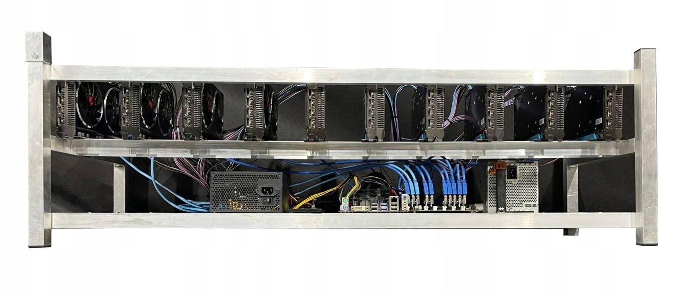 ✴️ Aluminiowe stelaże posiadają miejsce na 10 kart graficznych z gniazdem zasilania 6 pin+8pin (6+2pin).