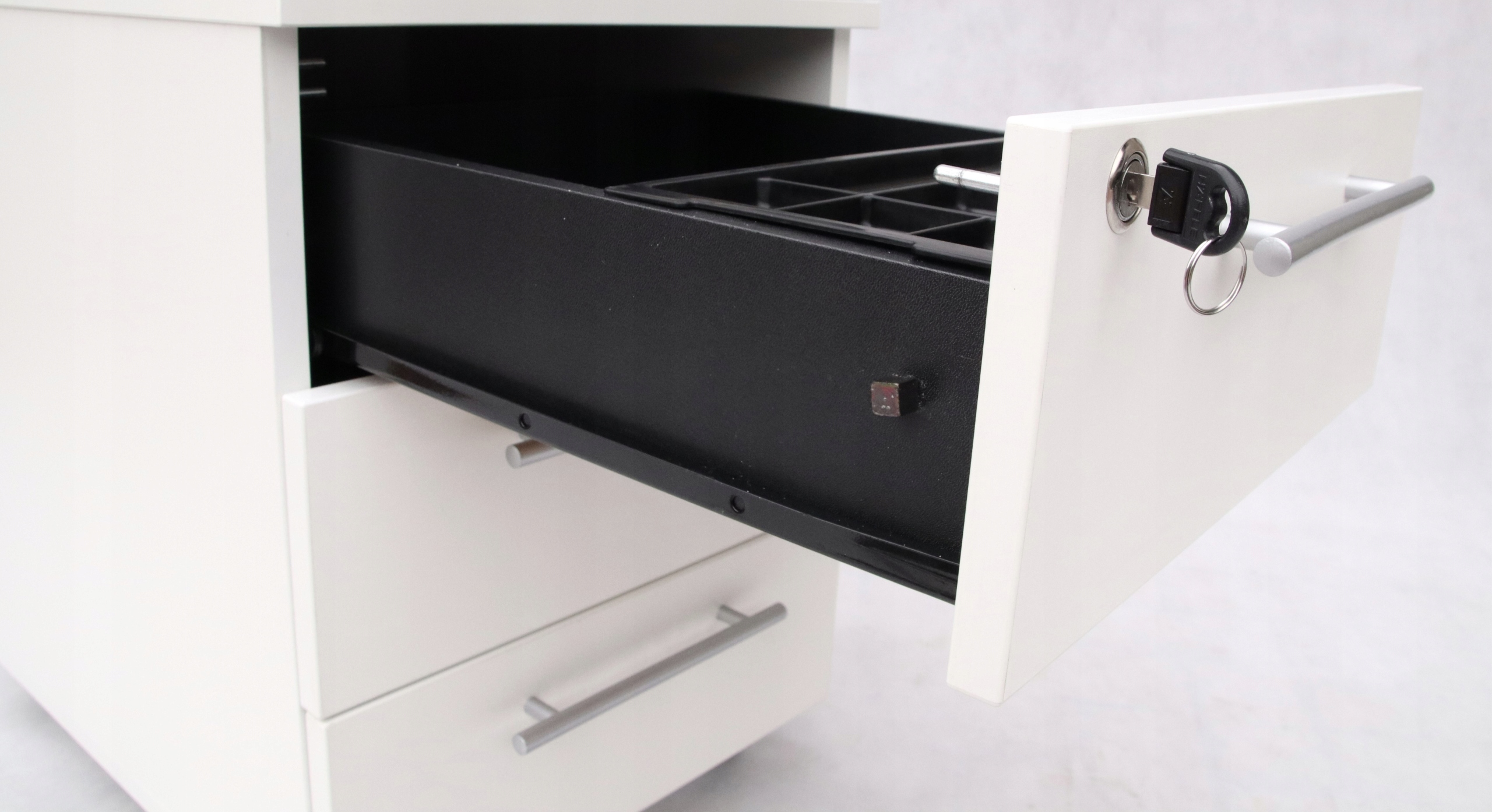 Kontenerek wykonany jest z wysokogatunkowych materiałów, dzięki czemu sprawdza się nie tylko do użytku domowego, ale również mocnej eksploatacji w przestrzeni biurowej. Organizer posiada 3 szuflady, które pomogą Ci utrzymać porządek w biurowych drobiazgach. Na spodzie kontenerka znajdują się duże kółka umożliwiające swobodne przestawianie i ustawienie w przestrzeni pod biurkiem z możliwością blokady.