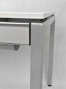 Biurko firmy VS to połączenie prostego designu i wysokiej jakości materiałów. Blat składa się z trzech elementów - głównej płyty i dwóch mniejszych, otwieranych. Zastosowane rozwiązanie umożliwia wygodne ułożenie przewodów. Specjalna maskownica w formie szczotek pozwala na wyciągnięcie kabli w dowolnym miejscu. Pod blatem znajduje się materiałowy uchwyt, prowadnica na kable, dzięki czemu zachowanie porządku jest znacznie łatwiejsze. Biurko wyposażone zostało w nogi wkręcane w metalowy stelaż, posiadające możliwość regulacji aby zapewnić pełną stabilność mebla. Wysokość biurka jest regulowana, co pozwala na wygodną pracę zarówno niskim, jak i wysokim osobom.